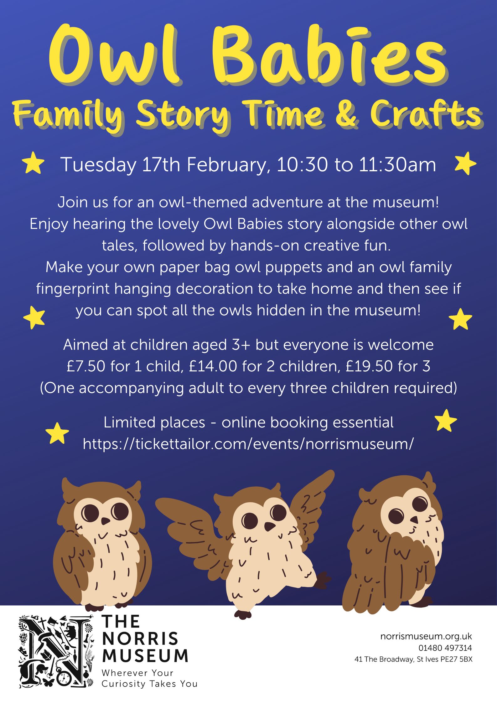 Enjoy the much-loved Owl Babies story alongside other owl tales, followed by creative activities. Families will make paper bag owl puppets and an owl fingerprint hanging, then search the museum for hidden owls.