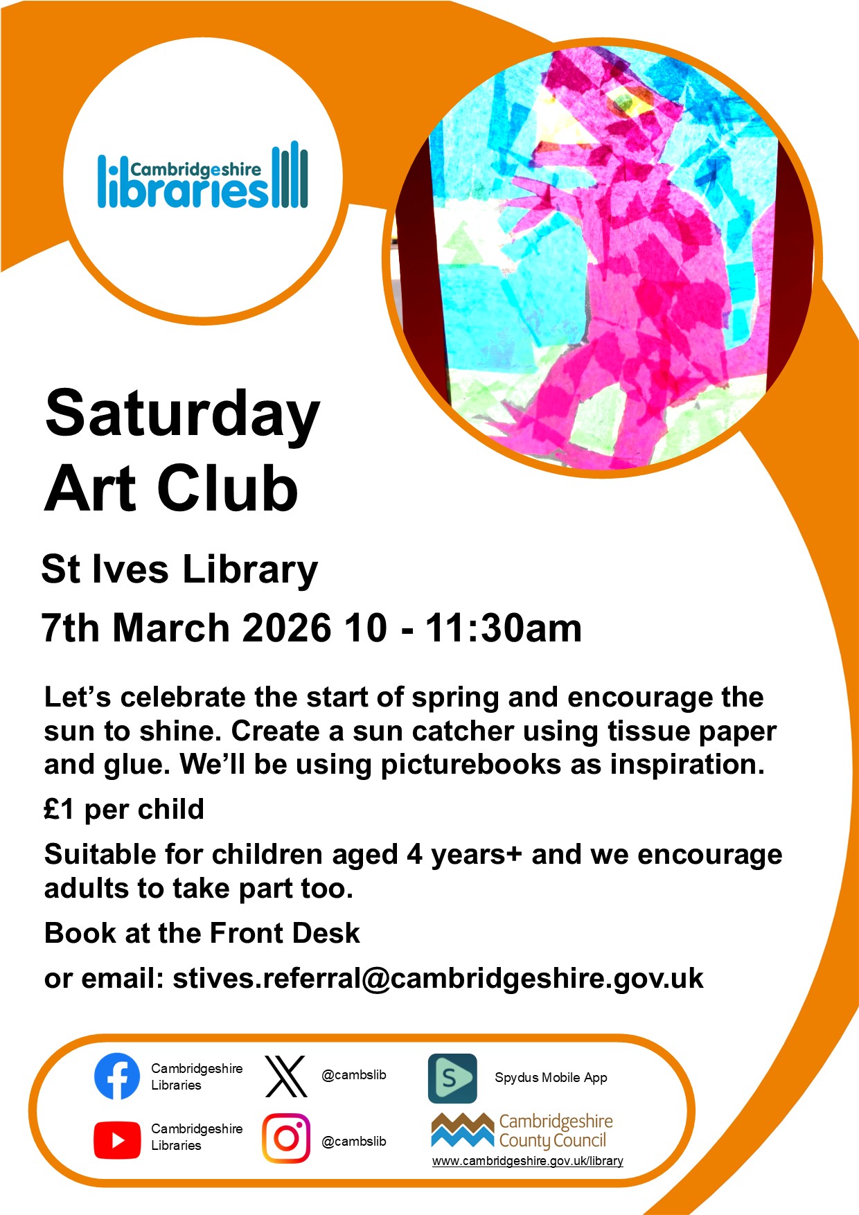 The event is on Thursday 10 March 2026 9.30am - 2.15pm at The Burgess Hall, Westwood Road, St Ives, Cambridgeshire PE27 6WU